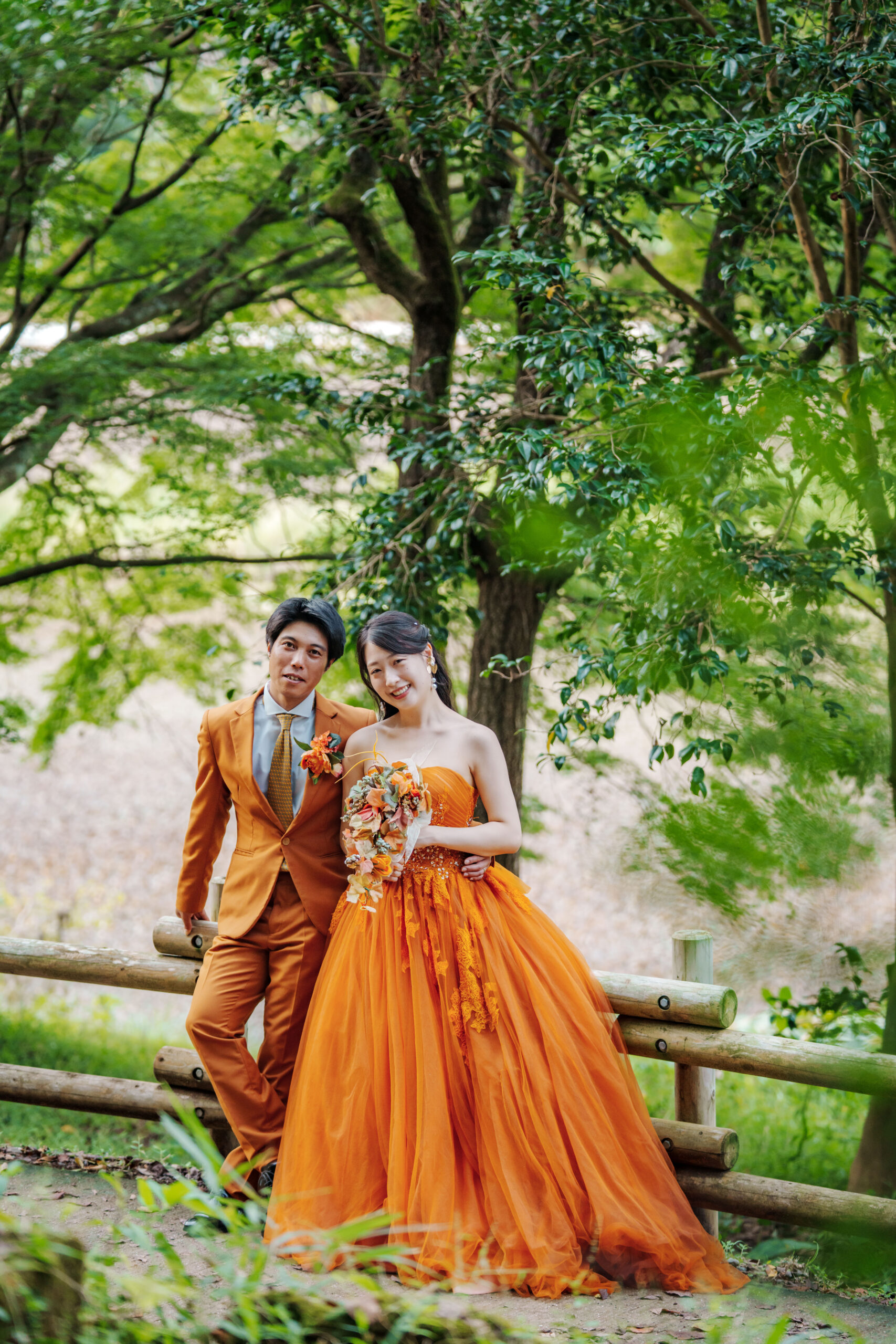 緑豊かな立田山で新郎様・新婦様のオレンジコーデが素敵でした✨