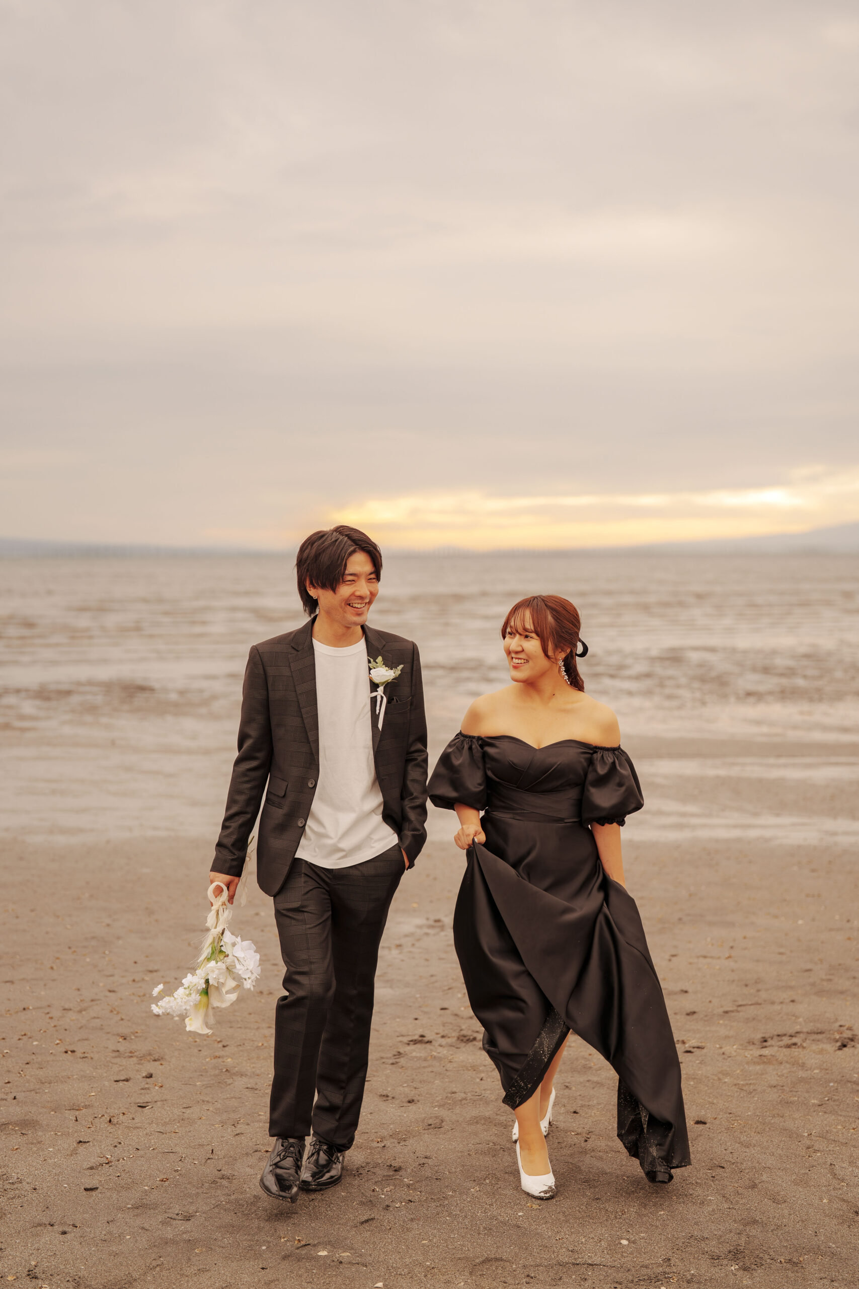 鍋松原海水浴場にて夕焼けの撮影を行いました✨