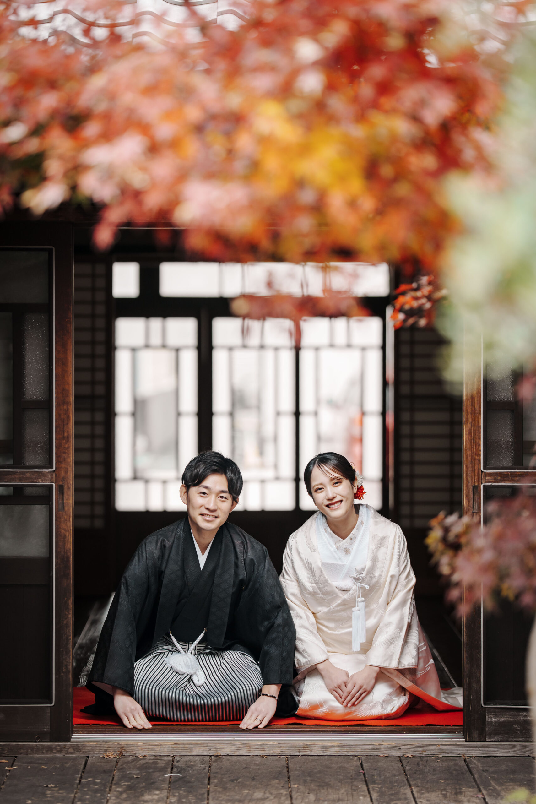 紅葉も残っており、新郎様・新婦様1日笑顔で撮影を行いました!