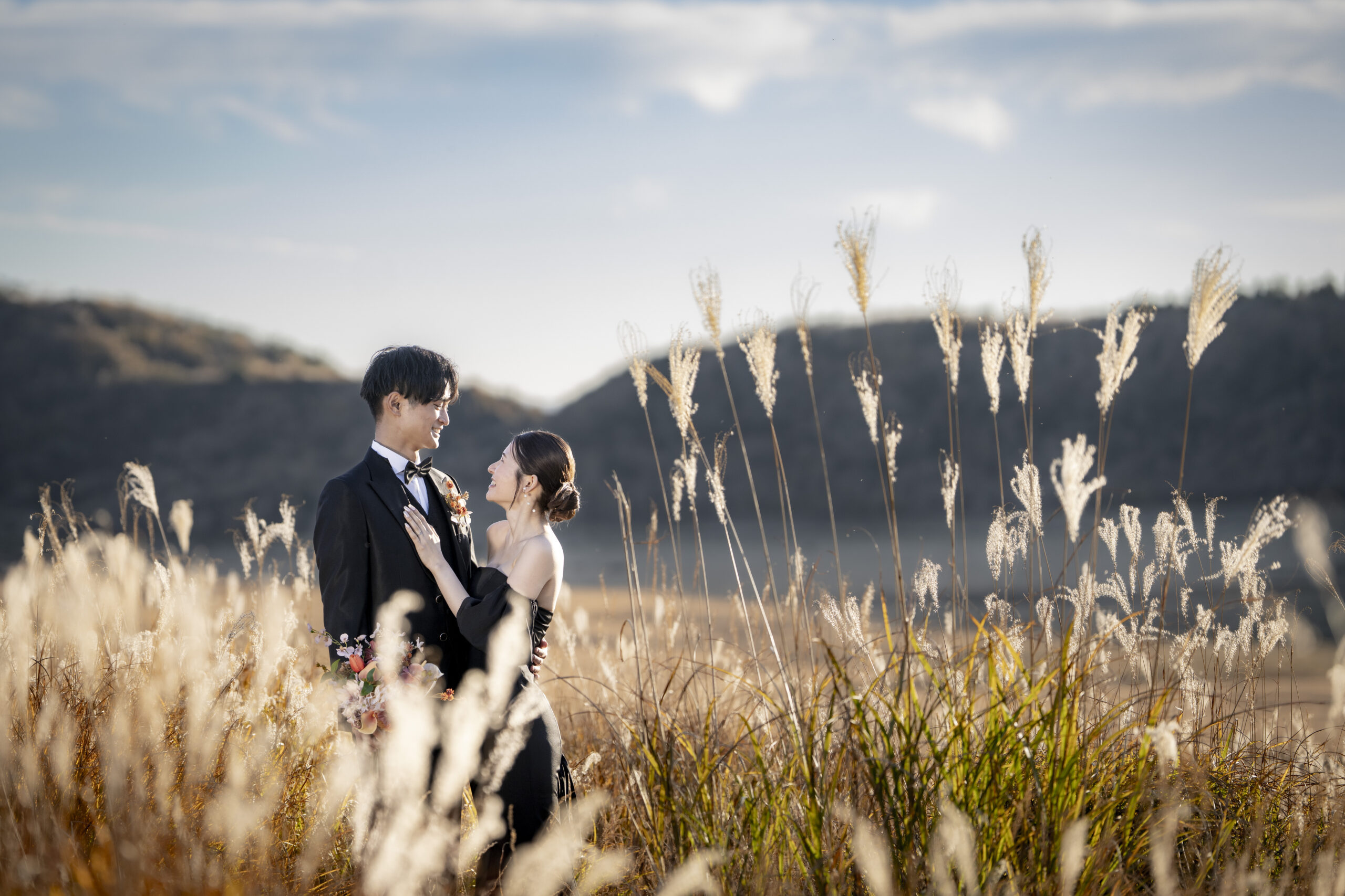 ススキの中で二人っきりの写真を